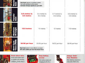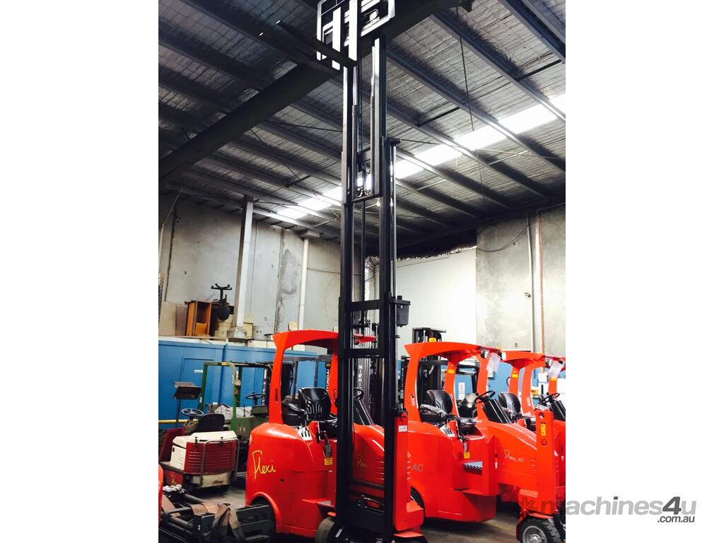 The advantages of the Flexi Narrow Isle Forklift are there is no mechanical components under